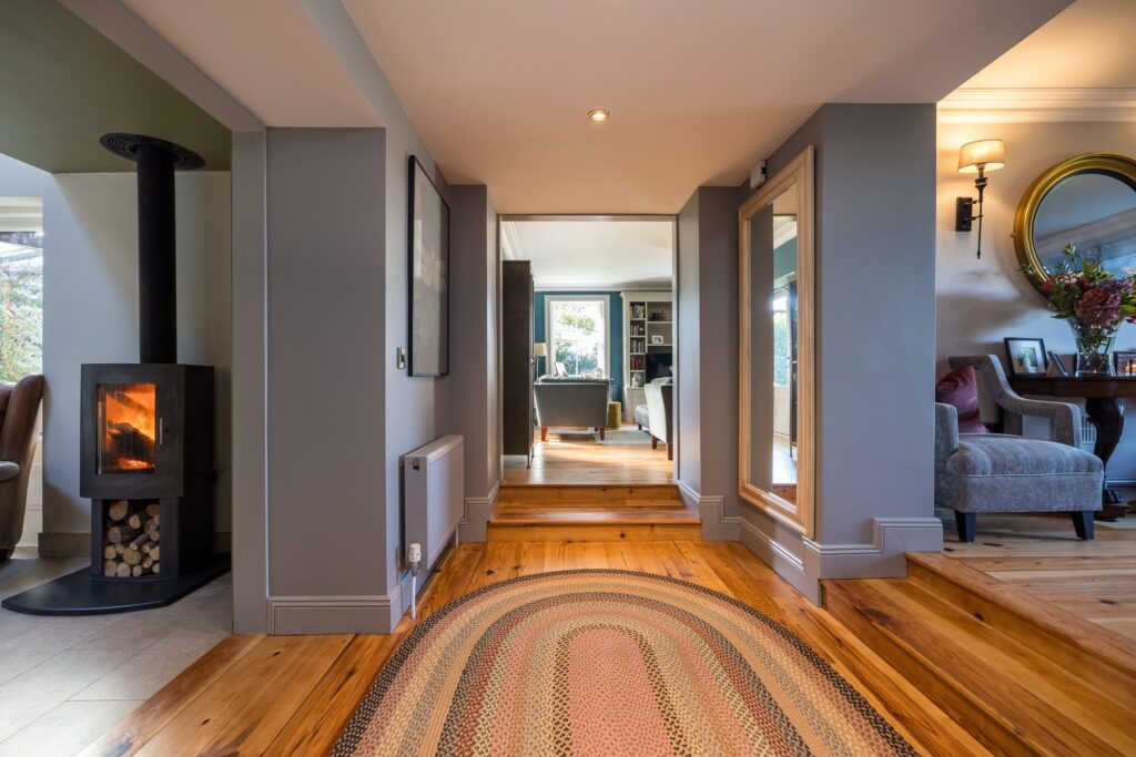| Central Hallway | 3.43m x 2.35m | Reclaimed solid pitch pine timber floors with two steps rising back to reception room, open alcove leading to the open plan kitchen/dining area and concealed doors leading to the utility room and separate shower room. |