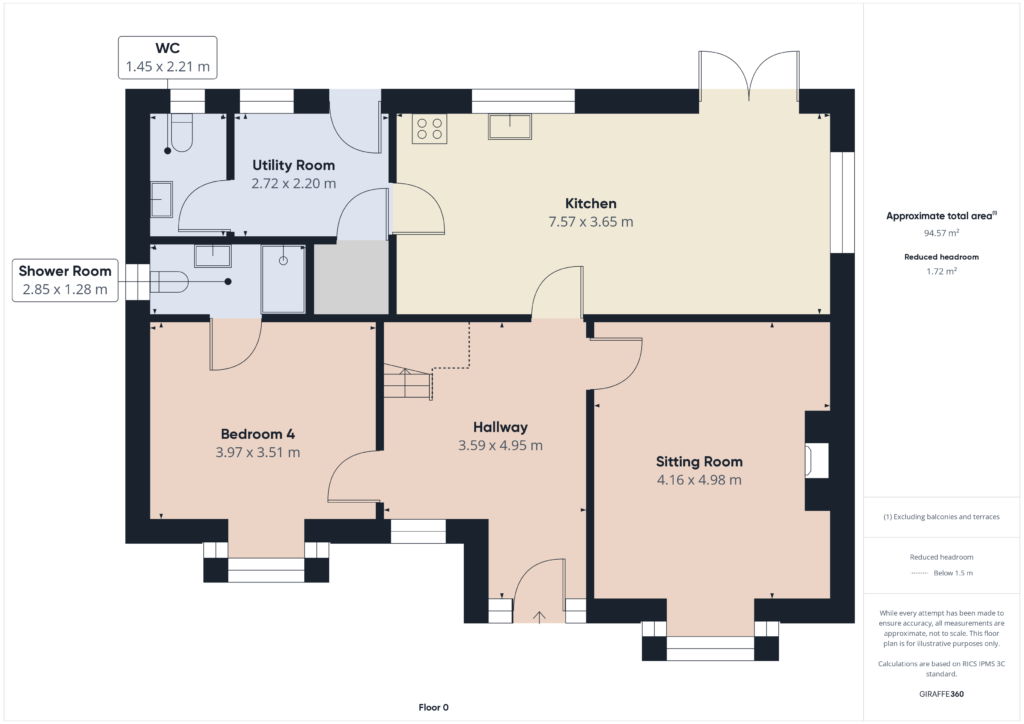 | Sitting Room | 4.17m x 4.96m | Feature open fireplace and multi-fuel stove. Built-in display units, feature box window. Semi-solid timber floor. |