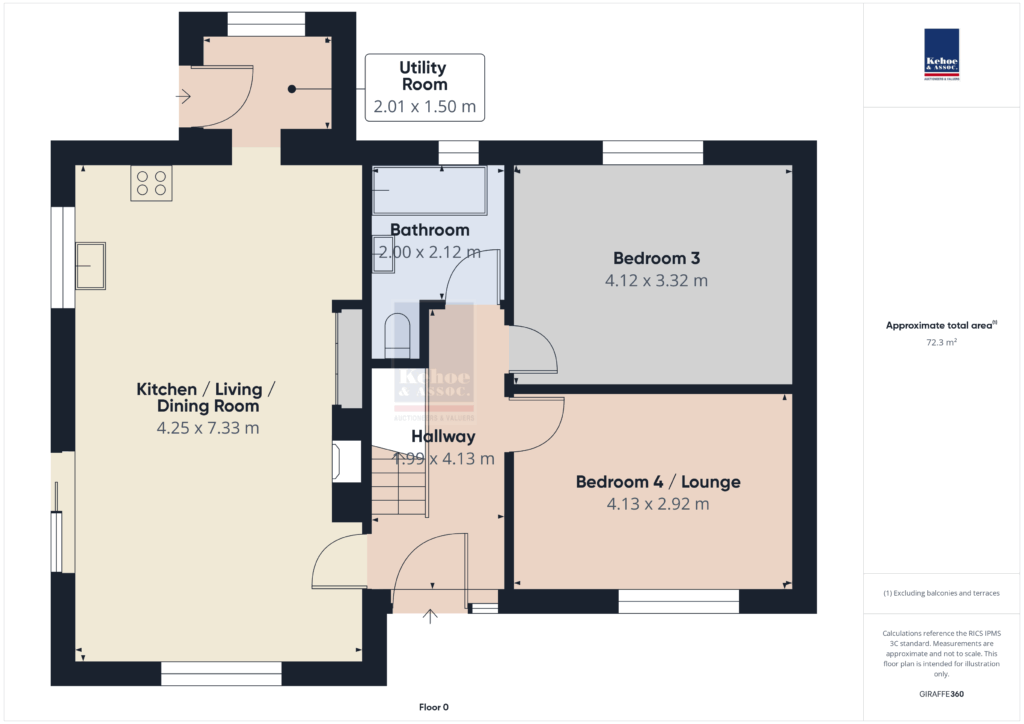 | Utility Room | 2.05m x 1.51m | Laminate flooring, plumbed for washing machine and door to rear garden. |