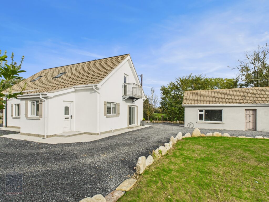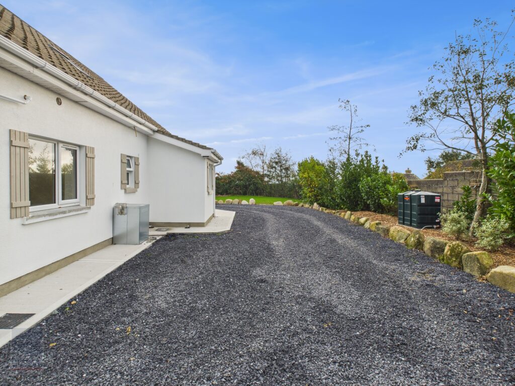 Externally, the property features a beautifully landscaped, low-maintenance garden with a small lawn area, decorative stone detailing and attractive planting, creating a tranquil and private outdoor space. The detached garage, extending to c. 35 sq. m. / 377 sq. ft., provides excellent storage or hobby space. It is also plumbed for a W.C. offering conversion potential. The gravel driveway provides generous parking. Viewing of this wonderful home comes highly recommended.