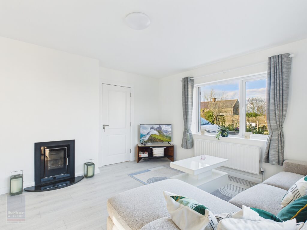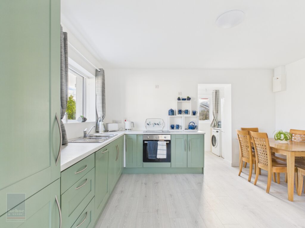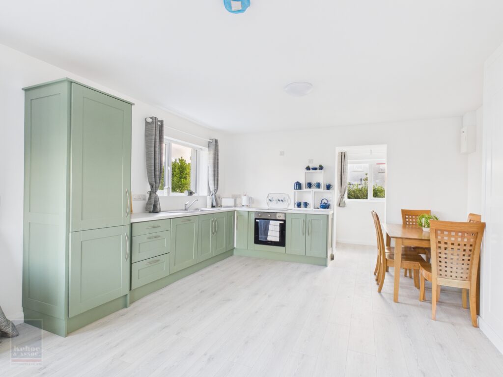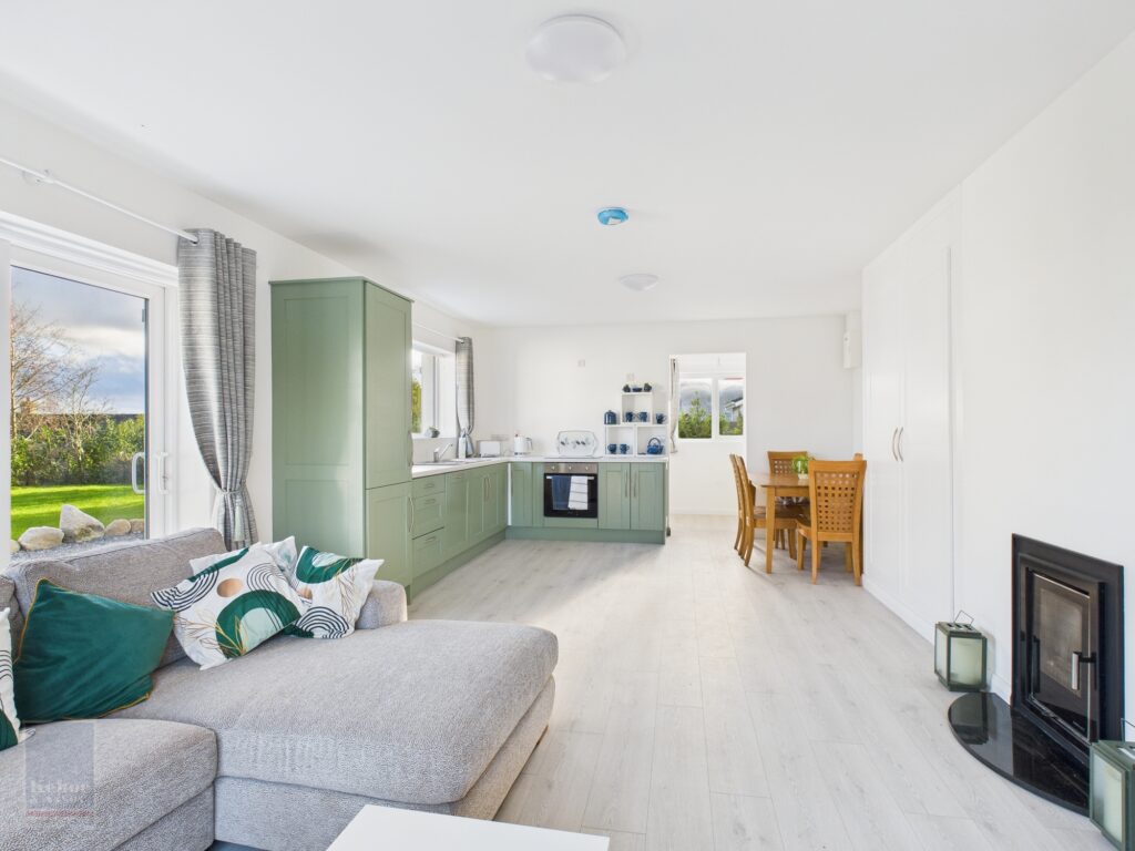 | Open Plan Kitchen / Living / Dining Room | 7.37m x 4.30m | Laminate flooring, fitted kitchen with electric oven, hob, extractor fan, sliding door to rear garden, Henley insert solid fuel stove and hotpress. |