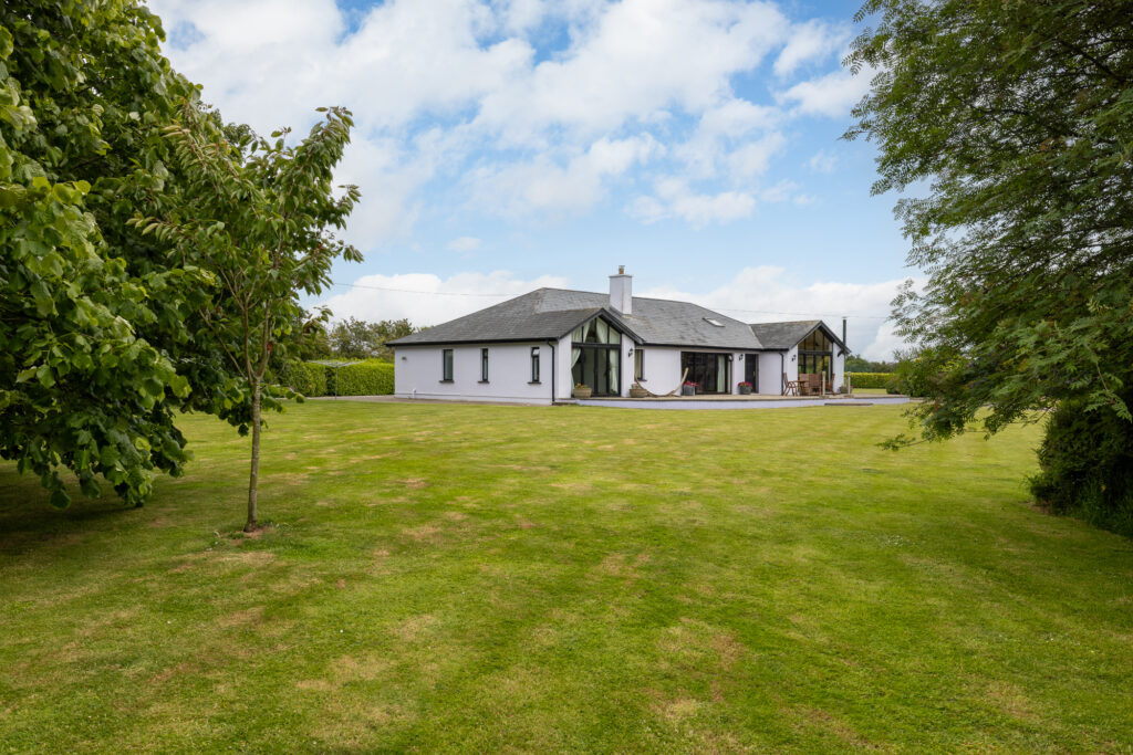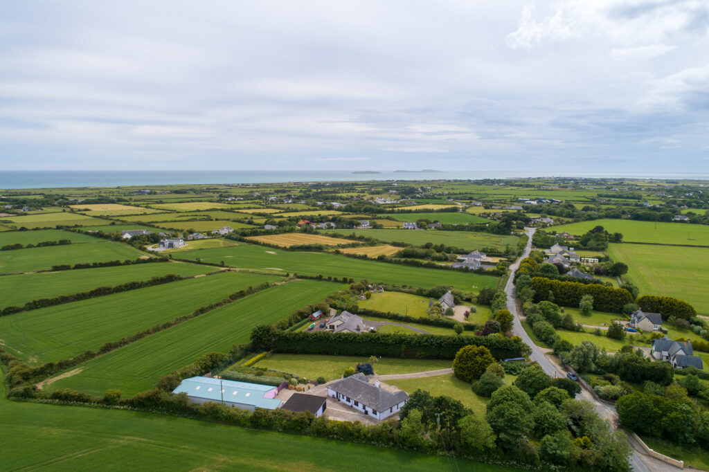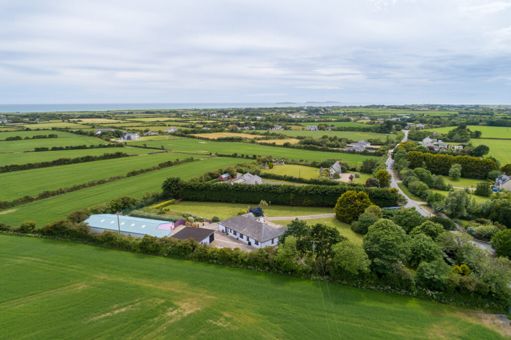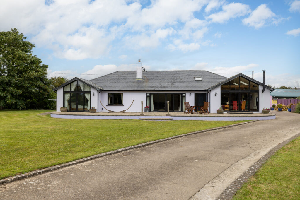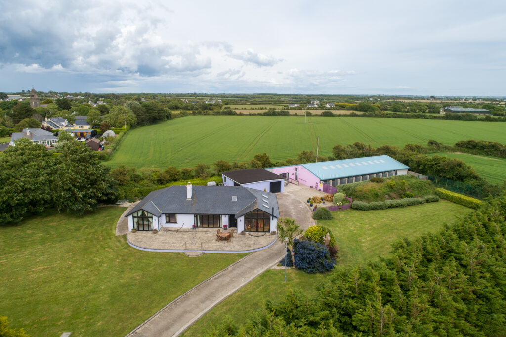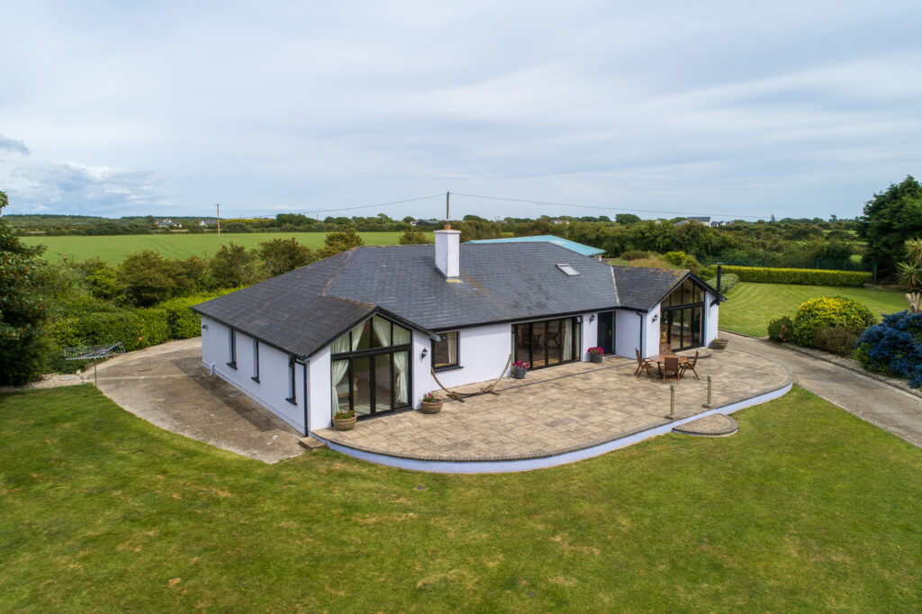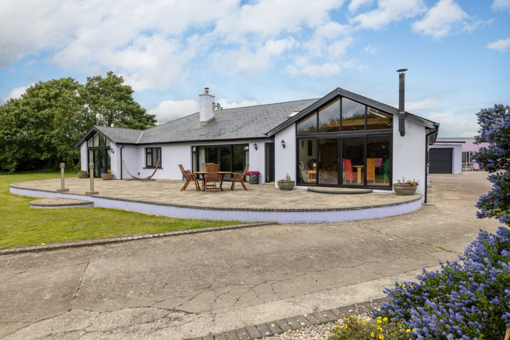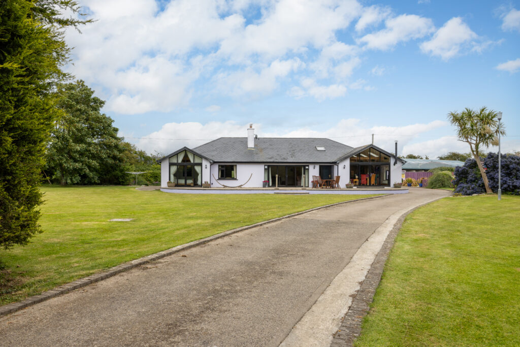 This exceptional opportunity offers the rare chance to acquire both a beautifully appointed 4-bedroom family home and a separate high-spec commercial premises. Positioned side by side, this configuration offers excellent lifestyle flexibility and strong business potential in a peaceful coastal setting. Set well back from the road and entirely hidden from view behind mature boundaries, this superb 4-bedroom bungalow offers peaceful seclusion on a beautifully landscaped site extending to c. 0.70 hectares / 1.73 acres. A sweeping driveway meanders through expansive lawns and leads to a generous south-westerly patio terrace that spans the full width of the residence. From this slightly elevated position, the house enjoys a tranquil garden outlook with rolling green space, manicured planting, and complete privacy.