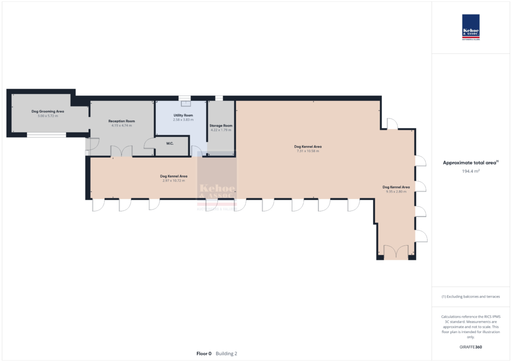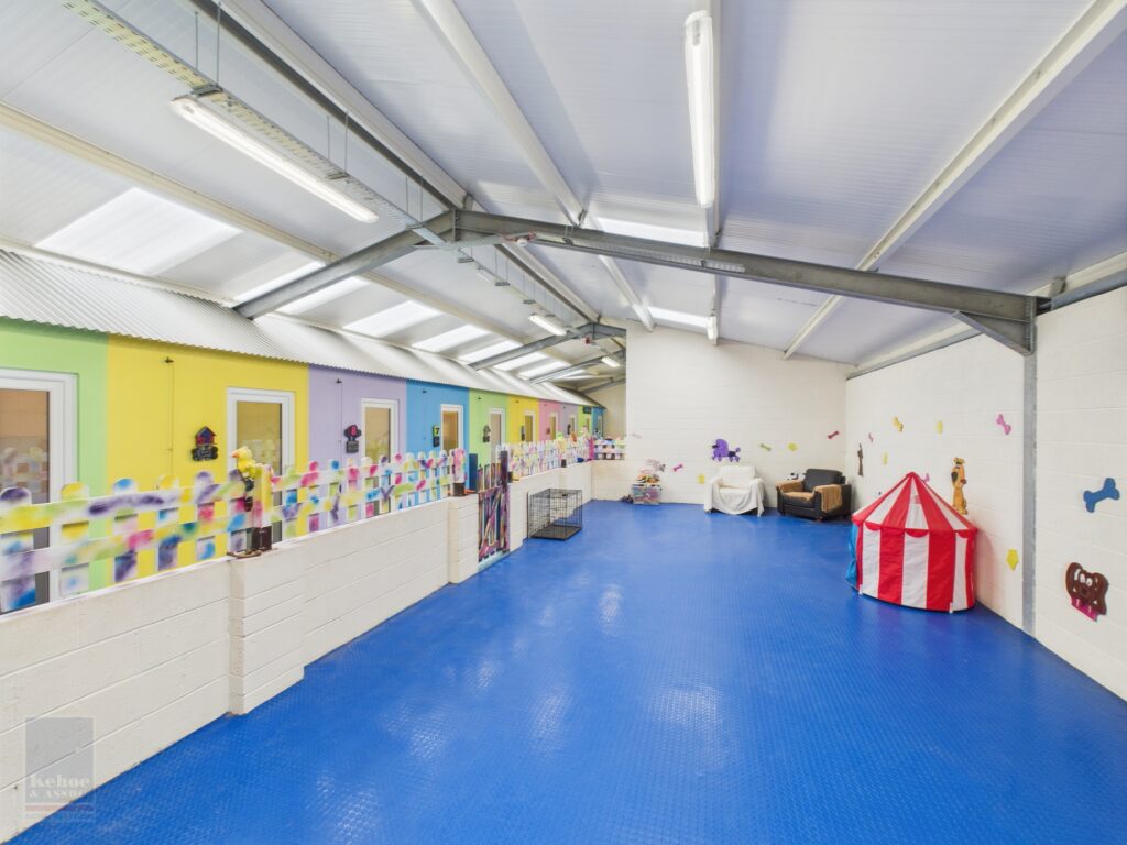 Extending to c. 293 sq.m. / 3,154 sq.ft., the building stands entirely separate from the main residence allowing for complete operational independence. Constructed in 2016, the premises is of steel-framed construction with insulated walls and floors, and finished with a 40mm double-skin Kingspan insulated roof. Internally, the building is meticulously planned to combine practicality with flexibility. It is currently home to the multi award-winning “Bed & Biscuit Boarding Kennels”, a luxury dog boarding and grooming facility that has achieved national recognition, having been awarded Ireland’s Best Pet Boarding Service by the Prestige Awards for five consecutive years (2020–2025).