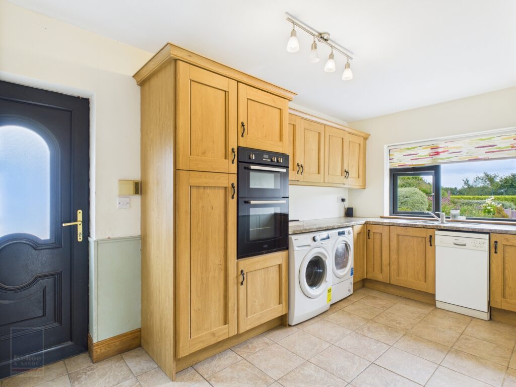 | Utility Room / Rear Kitchen | 4.49m x 2.33m | Tiled floor, floor and eye level units, washing machine, dryer, dishwasher, stainless steel sink and integrated double oven. |