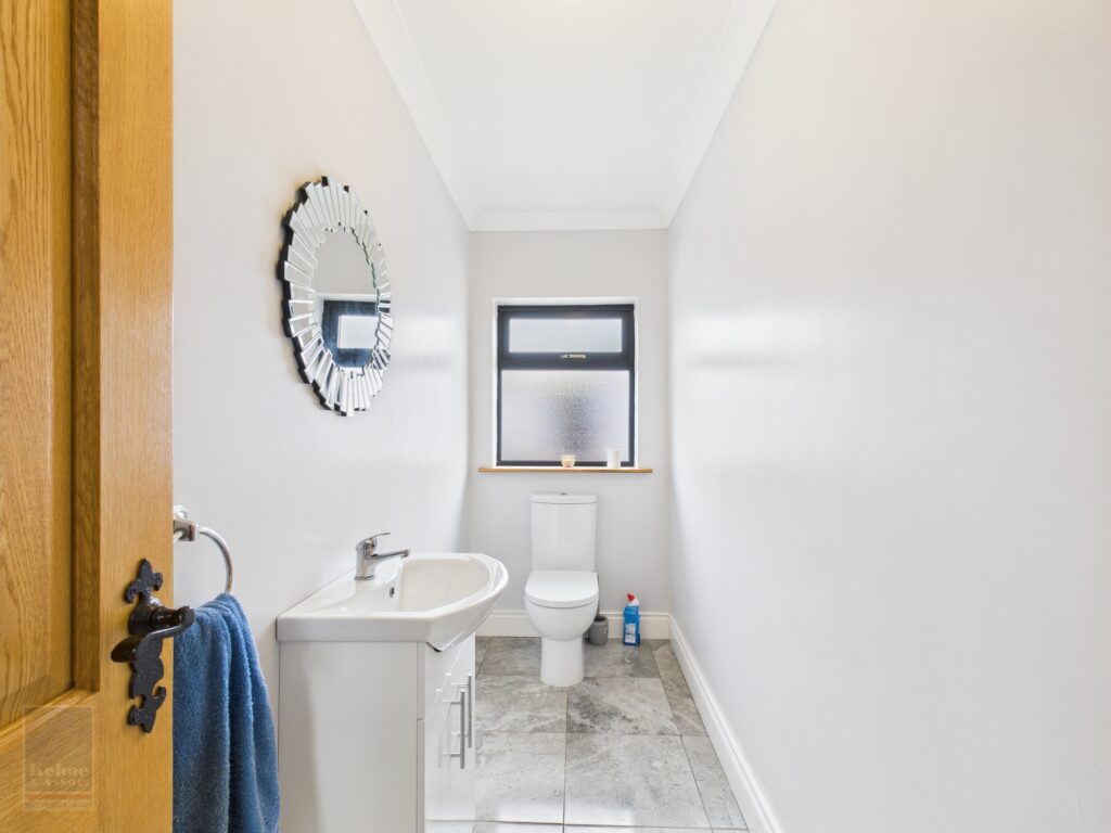 | Guest W.C. | 3.11m x 1.17m | Tiled floor, w.c., w.h.b. with vanity unit and ceiling coving. |