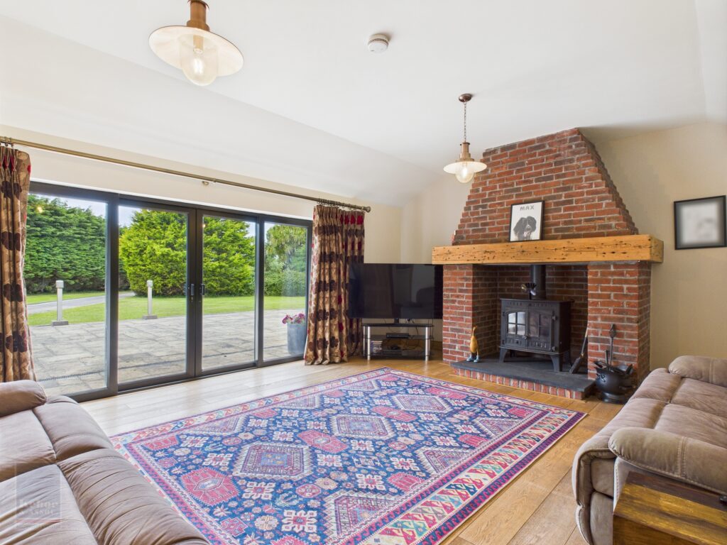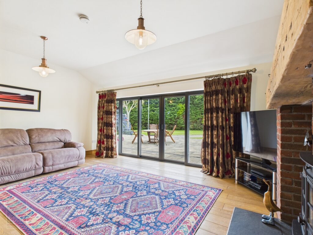 | Sitting Room | 6.31m x 5.10m | Solid oak floor, raised ceiling, feature solid fuel stove with red brick chimney breast and granite hearth and sliding doors to south westerly facing patio area. |