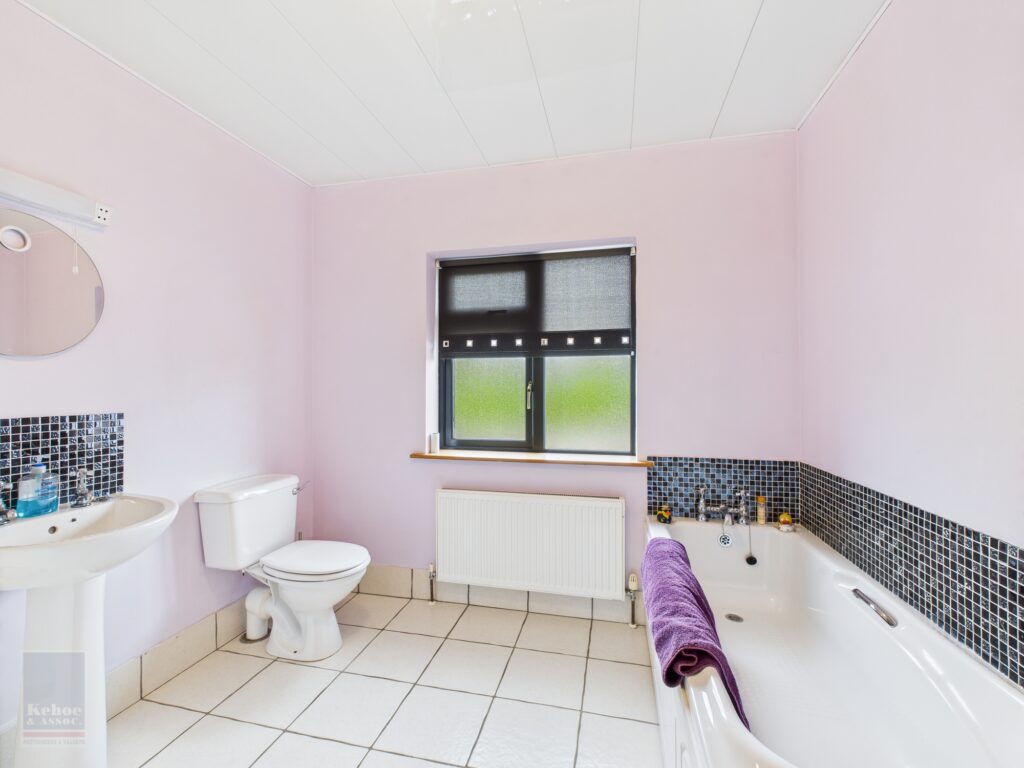 | Family Bathroom | 3.08m x 2.65m (max) | Tiled floor, w.c., w.h.b., bath with tiled surround, shower stall with pump shower and hotpress. |