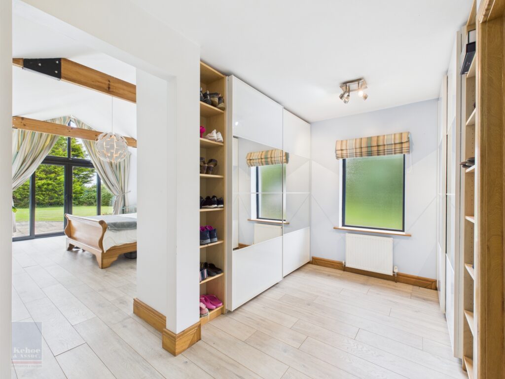 | Walk-in Wardrobe | 3.78m x 2.36m | Laminate floor, extensive integrated shelving and wardrobe units. |