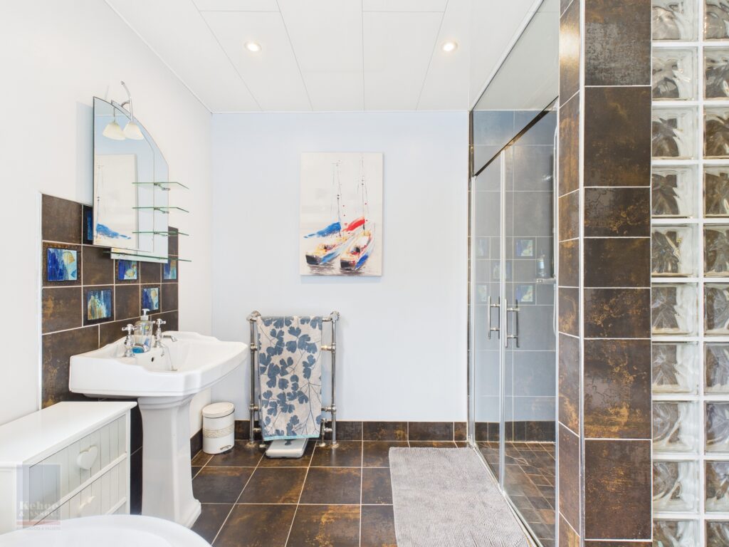 Externally, the grounds are well-tended and thoughtfully designed. A large detached double garage to the rear of the property includes an electric roller door, is plumbed for a W.C. and wash-hand basin, and provides excellent storage, workshop, or hobby space. While the adjacent commercial premises offers incredible scope for business, creative or enterprise use, the house itself stands entirely on its own merit — a refined, private family residence in one of South Wexford’s most sought-after coastal locations.