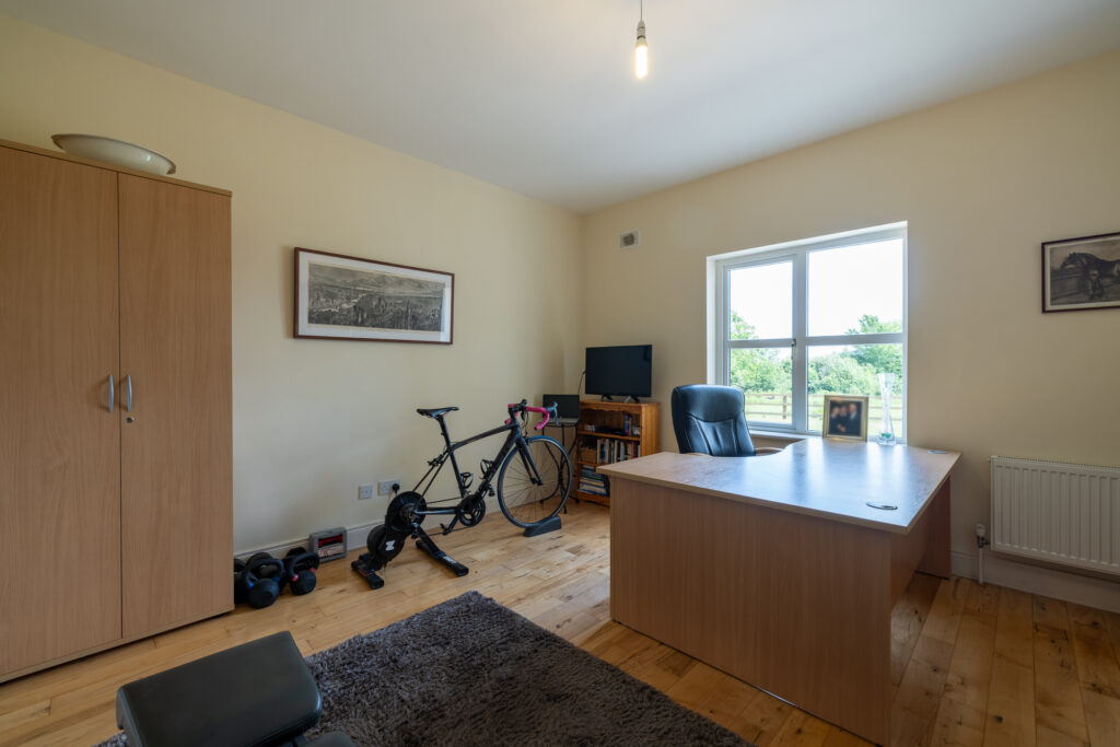 Office/Gym/5th Bedroom 4.42m x 4.04m Timber flooring throughout, large window overlooking rear paddocks, tv points and electric points and broadband router.