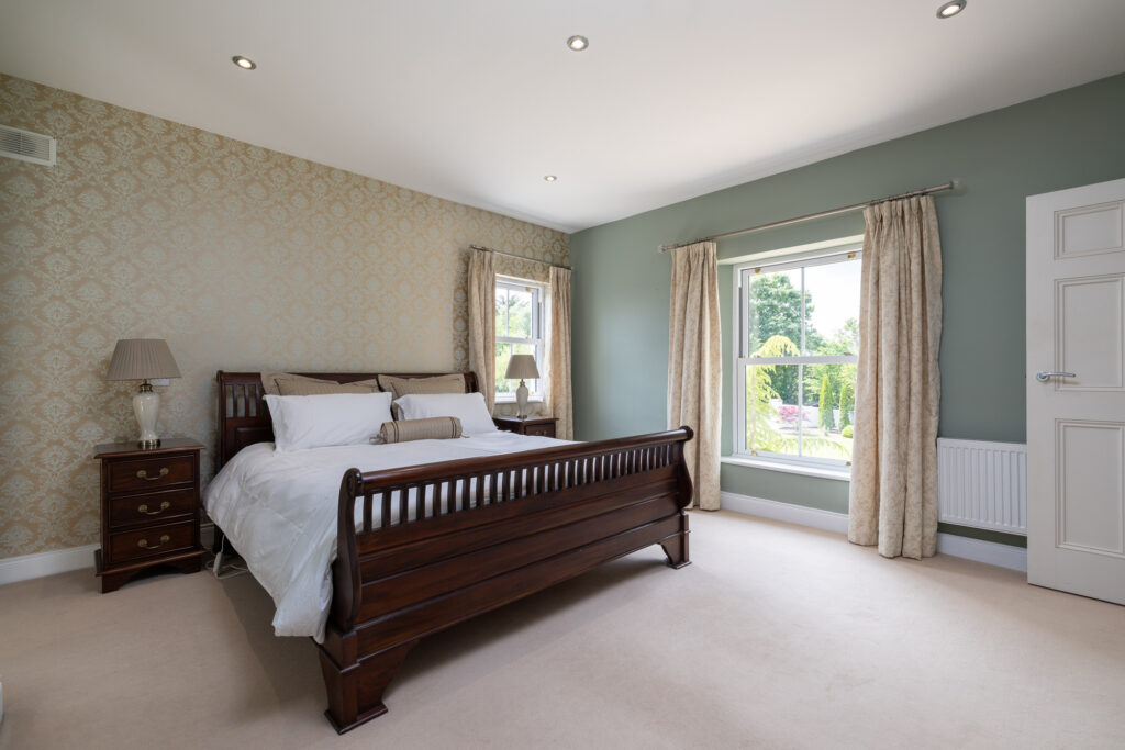 Bedroom 3 4.52m x 4.36m Ulster velvet wool carpet flooring throughout, large window overlooking rear garden and paddocks.