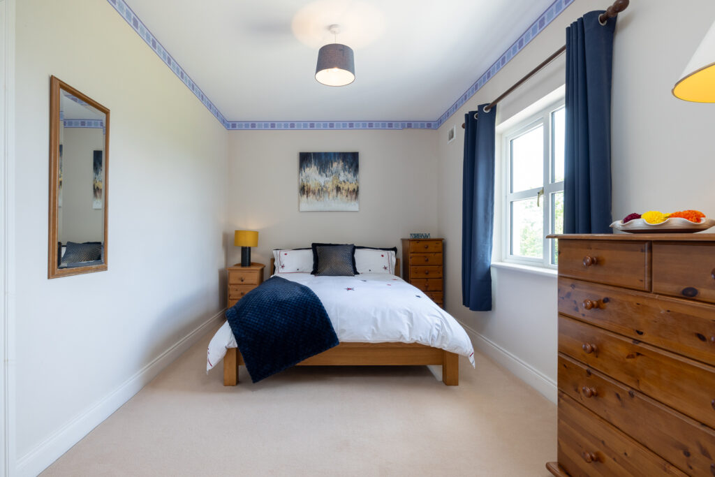 Bedroom 2 4.65m x 4.01m Ulster velvet wool carpet flooring throughout, dual aspect with splayed sach window overlooking front garden and window overlooking side garden.