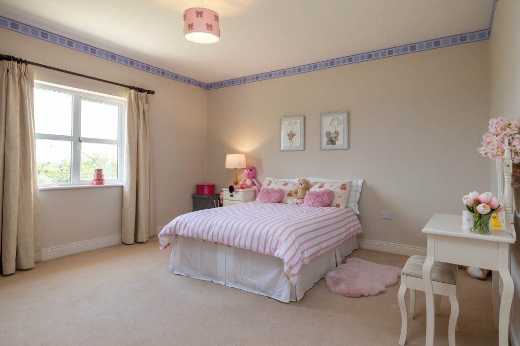 Bedroom 4 4.64m x 2.87m Ulster velvet wool carpet flooring, large window overlooking rear garden and paddocks.