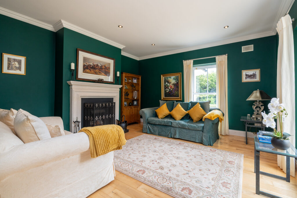 Sitting Room 4.47m x 4.41m Solid timber floors and throughout, dual aspect with splayed windows overlooking front garden and side garden, feature fireplace with an impressive stone mantlepiece, tv points and electric points throughout.