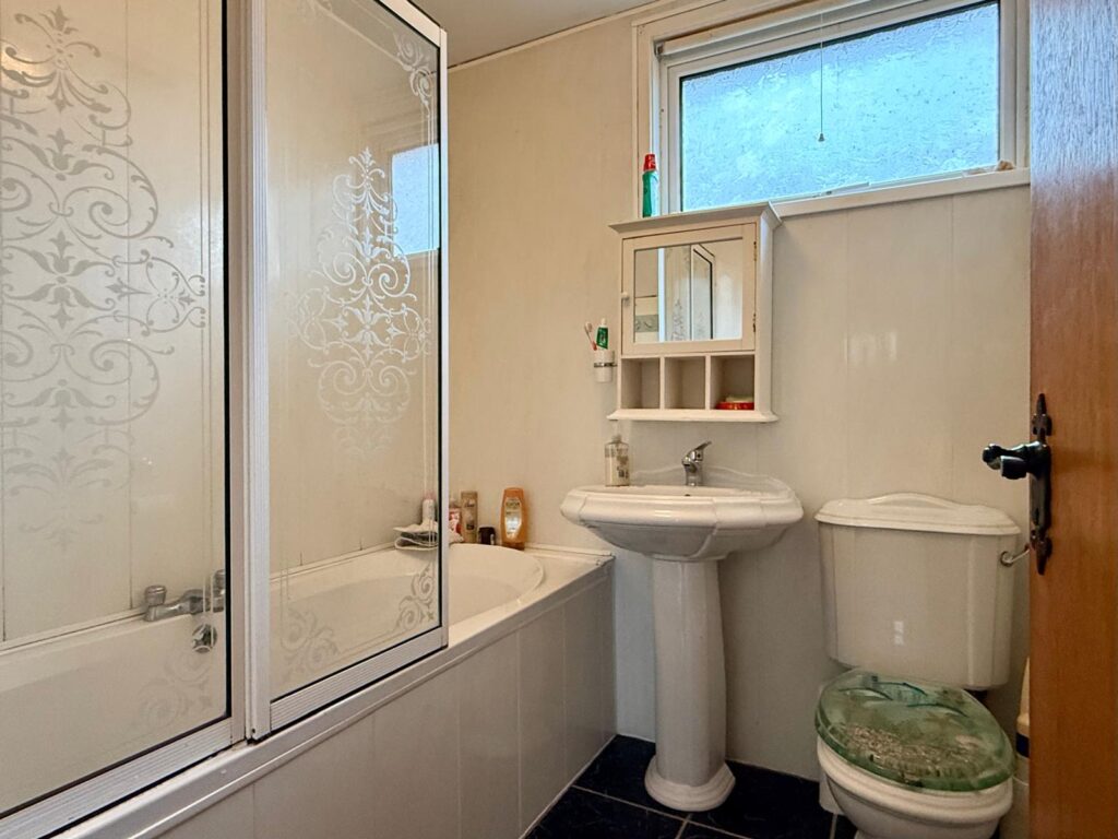 | Family Bathroom | 1.93m x 1.87m | Tiled flooring, vinyl floor to ceiling surround, bath with chrome faucet and separate Myra Elite electric shower, w.h.b with mirror and built in cabinetry overhead and w.c.. Hatch to attic overhead. |