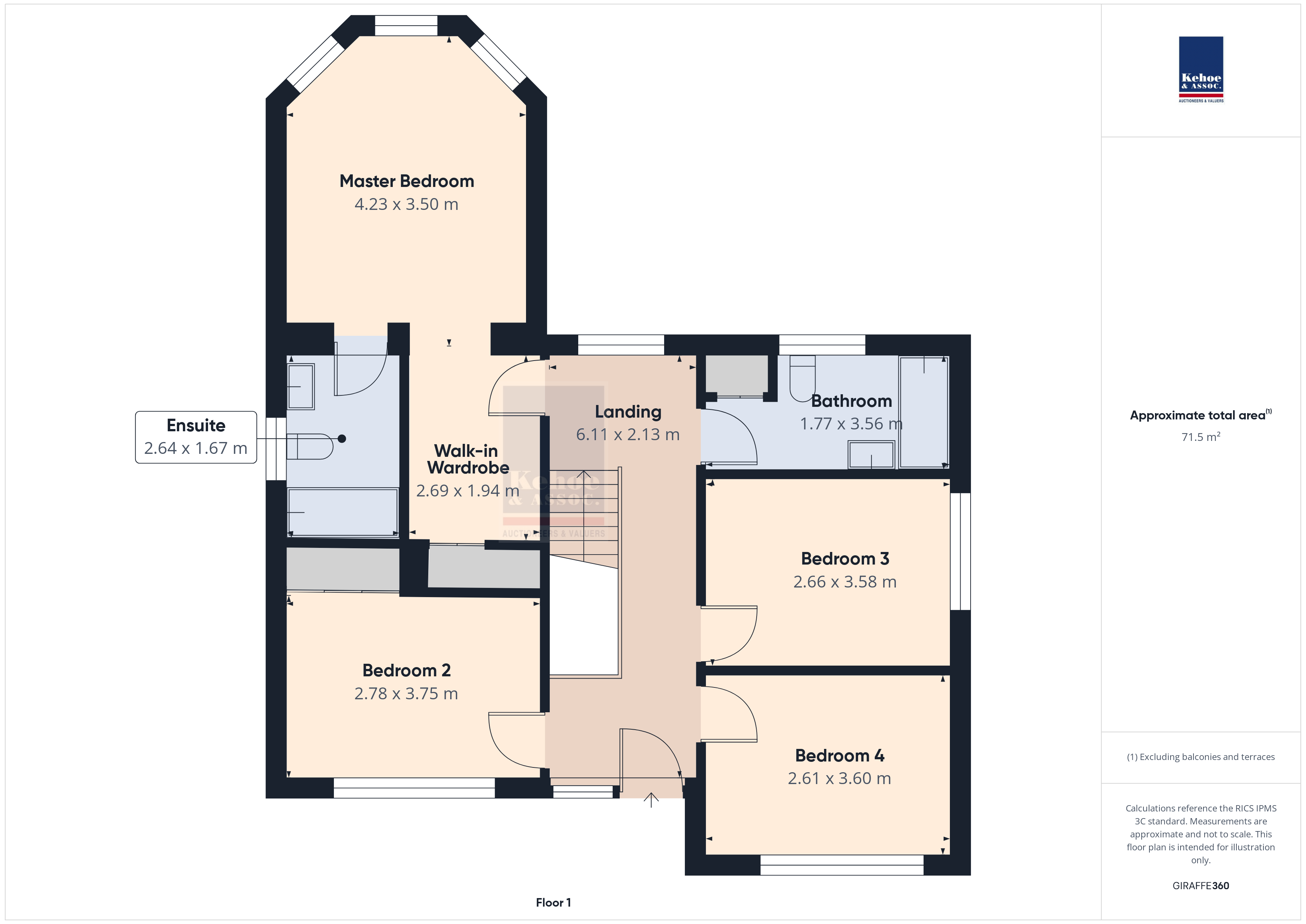 | Master Bedroom | 4.35m x 3.47m (max) | Carpeted flooring, ceiling coving, walk-in wardrobe. |