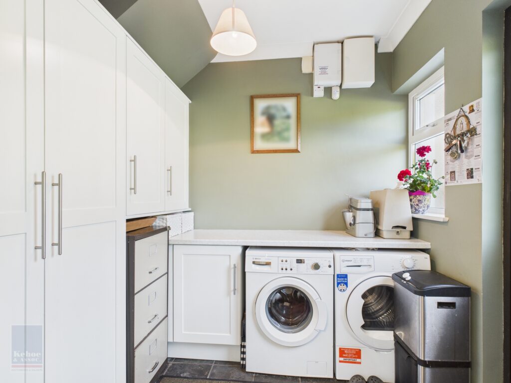 | Utility Room | 2.45m x 2.11m | Tiled flooring, ceiling coving integrated storage units, washing machine, dryer and door to rear garden. |