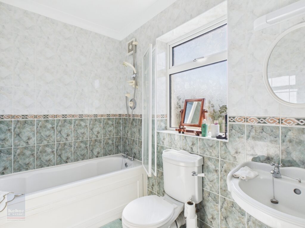| Family Bathroom | 3.56m x 1.76m | Fully tiled, ceiling coving, w.c., w.h.b. and bath with overhead pump shower. |