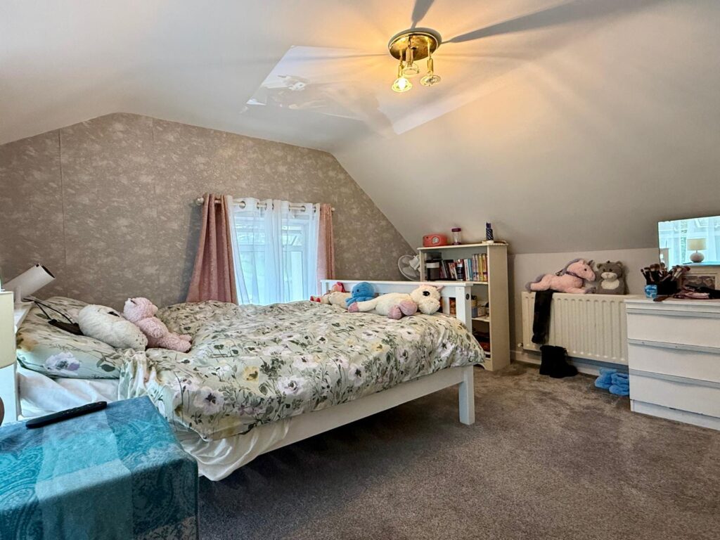 Bedroom 4 3.62m x 3.42m Carpeted flooring, dual aspect with window overlooking rear garden and driveway