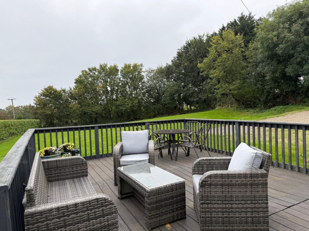Raised composite decking perfectly positioned to capture sunlight through the day