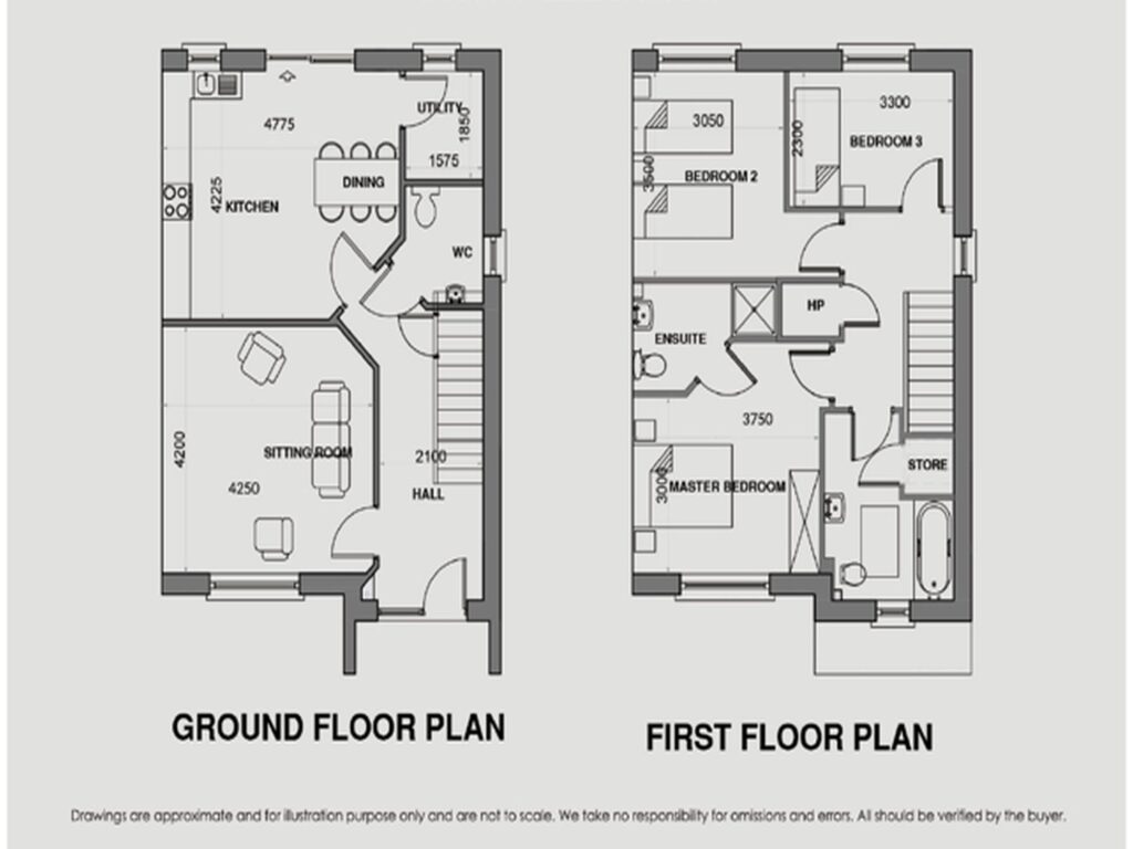 - Low Mainatance Dry Dash external finish to the sides and the rear of houses with black concrete roof tiles.