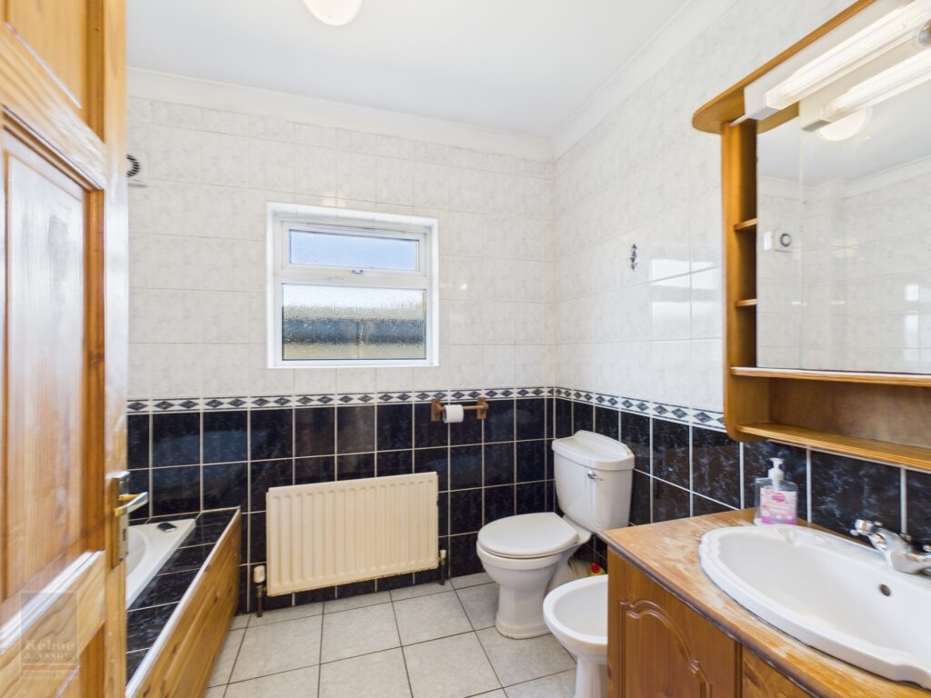 | Family Bathroom | 2.67m x 2.08m | Fully tiled, w.c., w.h.b. with vanity unit, bidet and jacuzzi bath with mixer taps. |