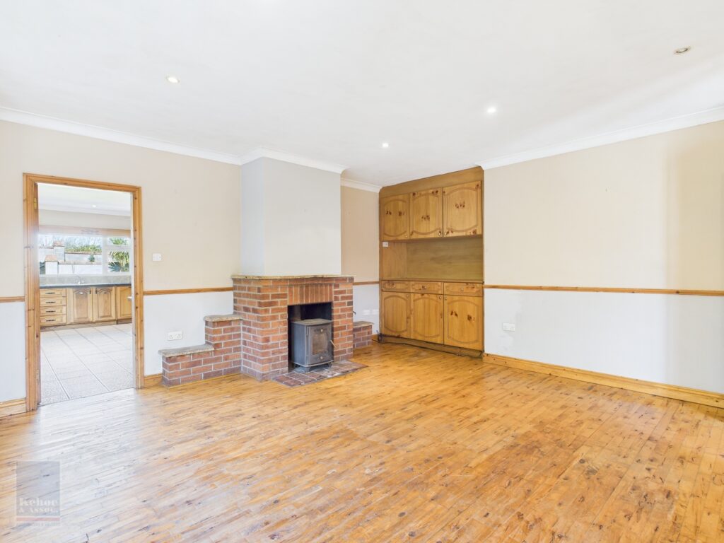 | Sittimg Room | 4.95m x 4.89m | Timber floor, ceiling coving, solid fuel stove with red brick surround and built-in storage unit. |