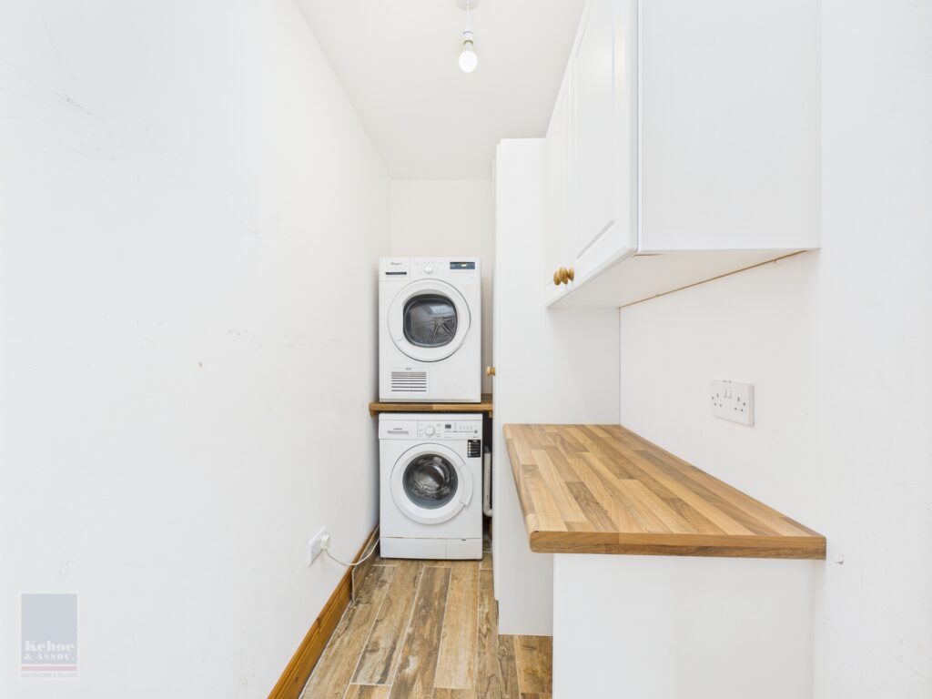 | Utility Room | 2.69m x 1.24m | Wood effect tiled floor, built-in storage units, washing machine and dryer. |
