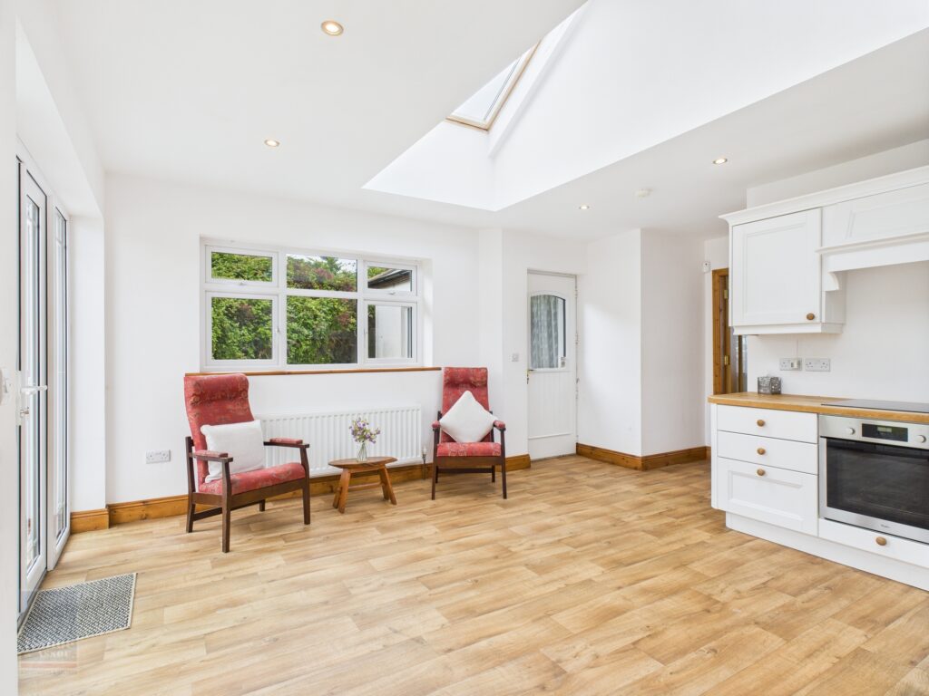 | Kitchen / Dining Room | 4.43m x 4.62m | Lino floor, floor and eye level units, electric oven, hob, extractor, stainless steel sink, integrated fridge freezer, dual sky lights and double doors to rear garden. |