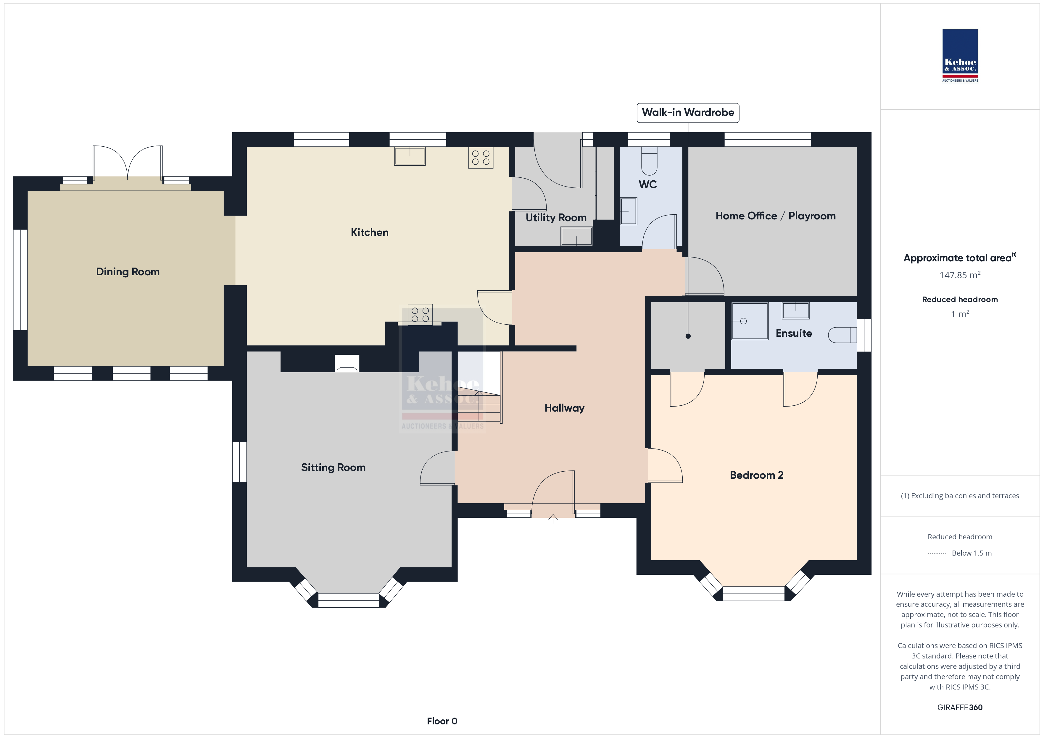 | Utility Room | 2.38m x 1.95m | Tiled floor, plumbed for washing machine and dryer, Belfast sink, countertop space and fitted storage units. |