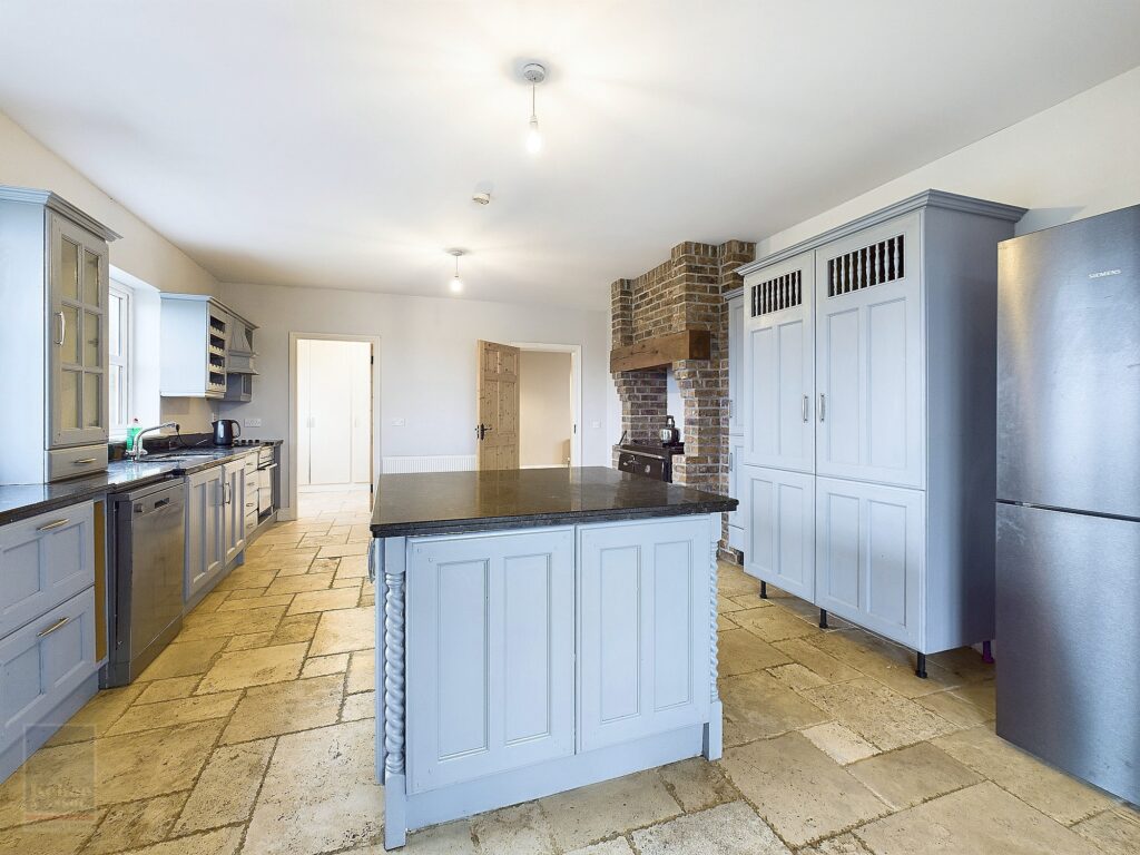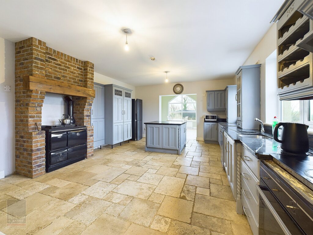 | Kitchen | 6.17m x 4.55m | Tiled floor, extensive fitted floor and eye level units, island unit, solid fuel Stanley range cooker with red brick surround, plumbed for dishwasher, dual stainless steel sink, electric oven, hob, extractor and open archway into: |