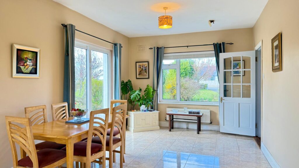 From the moment you step into the inviting entrance hallway, this home has been carefully maintained since its construction in 1998. This attractive dormer bungalow extends to c. 129 sq.m (1,389 sq.ft.) and is presented in excellent condition throughout. The accommodation is both practical and well-proportioned, comprising a bright kitchen/dining area, utility room, and a comfortable living room complete with a solid fuel stove. The ground floor also features a bedroom and a family bathroom, while upstairs offers two additional bedrooms, including a master with ensuite.