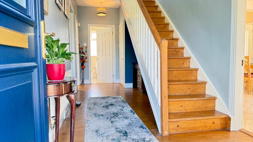 | Entrance Hallway | 5.97m x 2.12m | Solid timber tongue and grooved flooring, double heighted vaulted entrance with Velux over the landing space and timber staircase to landing area. Ample space under staircase for desk or further storage. |