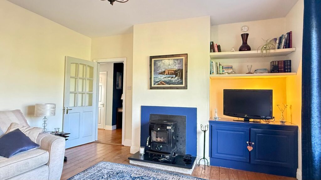 | Sitting Room | 4.30m x 3.99m | Tongue and grooved flooring, solid fuel fire, fitted tv console space with open shelves overhead. |