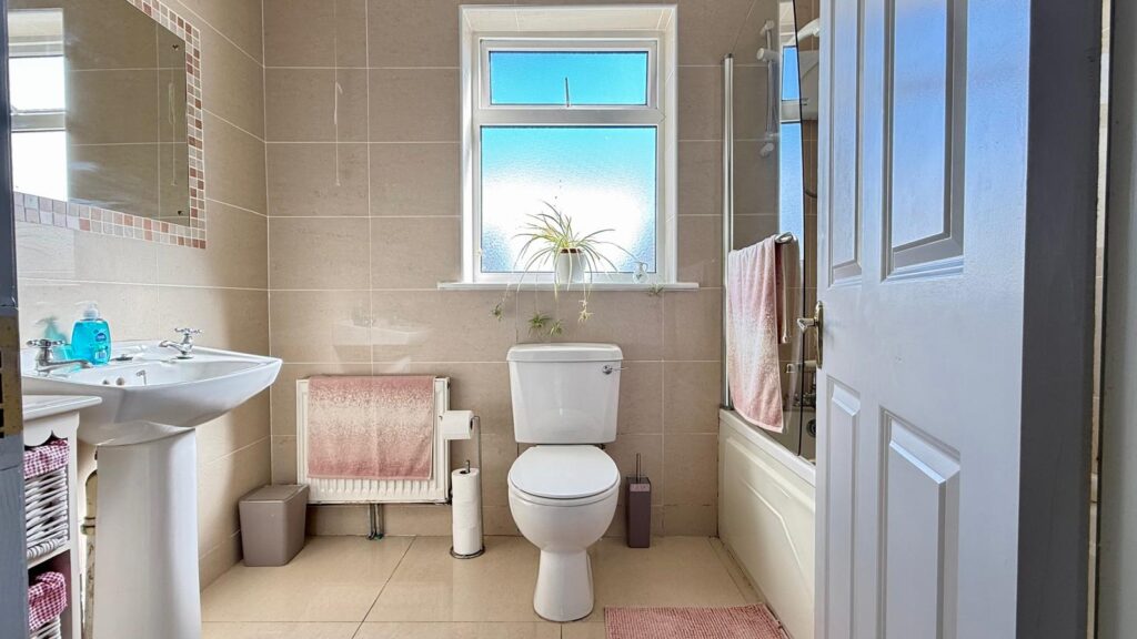 | Family Bathroom | 2.54mx 1.75m | Tiled flooring, bath with electric shower overhead and tile surround, w.h.b and w.c |