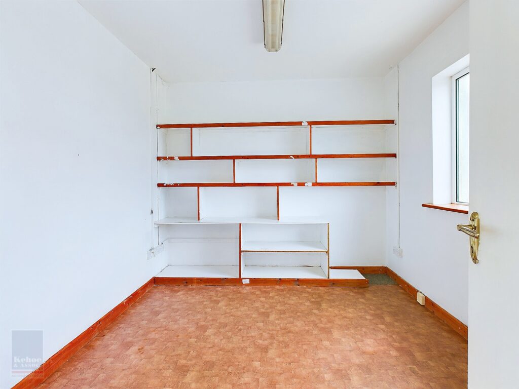 | Office Room | 3.35m x 2.88m | Lino flooring and open shelves, large window overlooking driveway. |