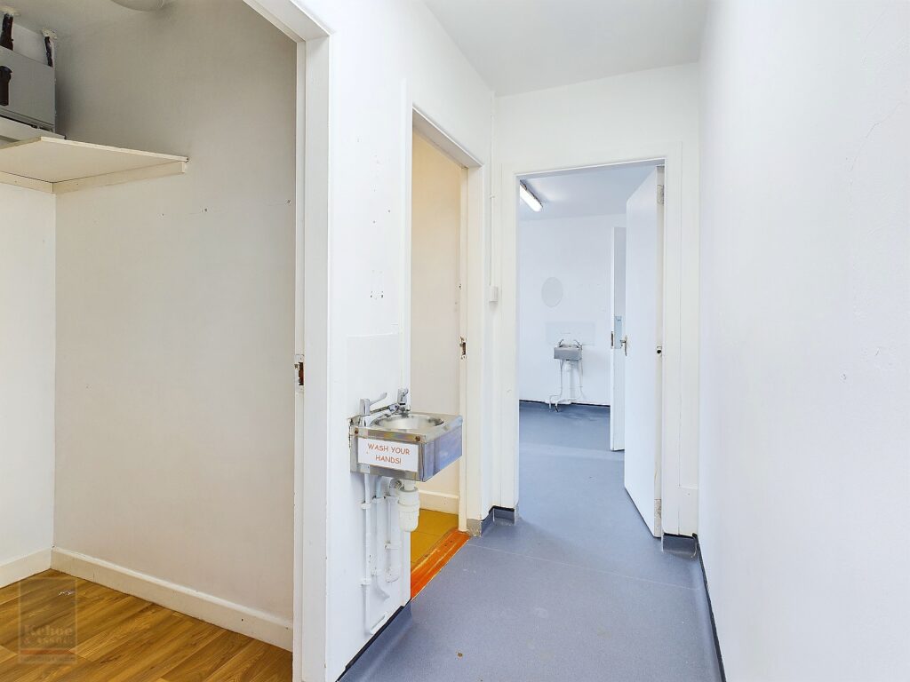 | Central Hallway | 3.69m x 1.09m | Leading to staff chambers quarters. Vinyl flooring throughout, wall mounted w.h.b. |