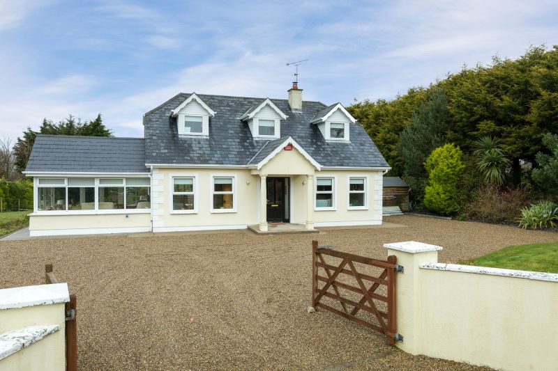 ‘Grianán’ is a most impressive 4 bed home close to the coast, Blackwater and Curracloe. It is presented for sale in excellent condition boasting bright, light-filled and free-flowing flexible accommodation. There is a wonderful sense of space throughout. Outside the site extends to circa 0.6 acres with excellent lawn areas. There is a large patio area running from the French doors in the sun room to the garden. There is an added bonus of a garden room/home office, just newly constructed. The location is superb, quietly tucked away, only 2km from Blackwater village. It is only a short drive from a choice of sublime sandy beaches. This is a wonderful property. Viewing is strictly by prior appointment. To arrange a suitable time, contact the sole selling agents, Kehoe & Assoc. at 053 9144393.