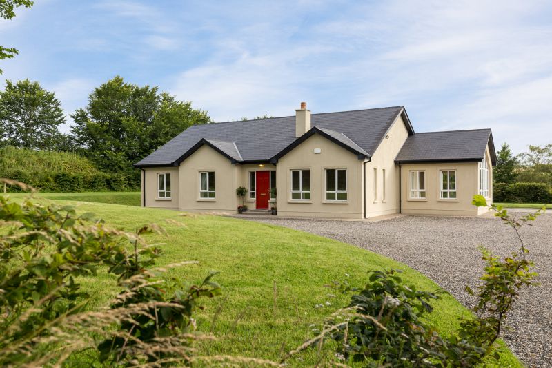 Description: The property offers spacious accommodation extending overall to c. 163 sq.m. / 1,755 sq.ft. plus an additional detached double door garage with an abundance of storage space available. This wonderful family home’s living accommodation is particularly well-appointed. It is bright, spacious and free-flowing. The property is fully alarmed and has the benefit of OFCH. The gardens in lawn to front and rear with mature plants, shrubbery & trees, host the potential to develop a gardener’s haven with ample space for polytunnels and vegetable gardens. In its current form it is an easily maintained garden and offers a sheltered cobblestone patio area with sunlight throughout the entire day. This property is nicely set back from the public road offering a great deal of privacy. All in all, it is a most spacious home and we highly recommend viewing. If you are searching for houses for sale in the Wexford countryside, this is an opportunity not to be missed.